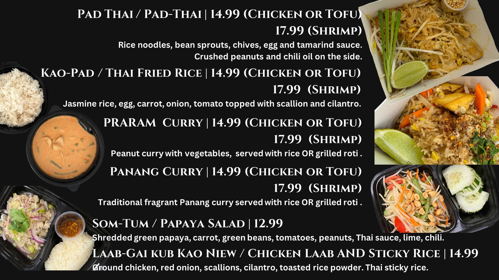 We make our food from scratch using fresh ingredients, Thai spices, special recipes, and careful attention to detail.